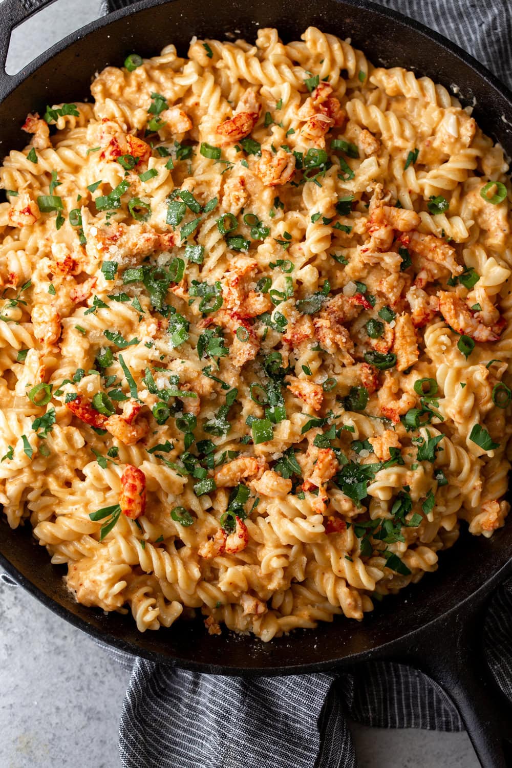 - As a main dish: Serve Cajun crawfish mac and cheese hot with fresh herbs on top.