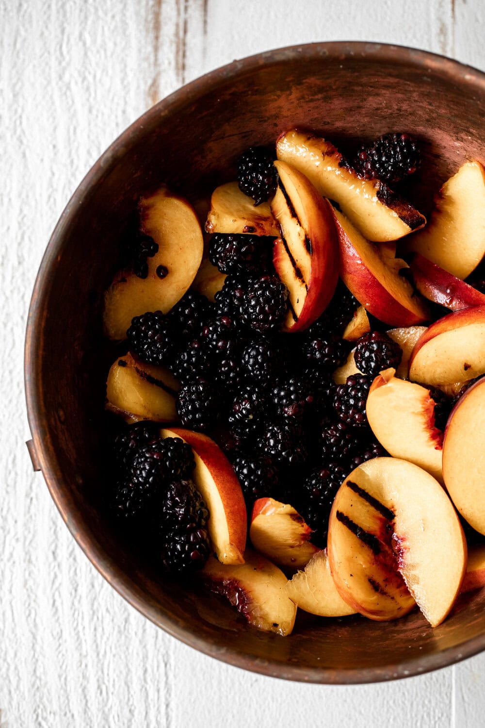 In this recipe the peaches are grilled to add extra depth of flavor; they become slightly caramelized and smoky on the grill.