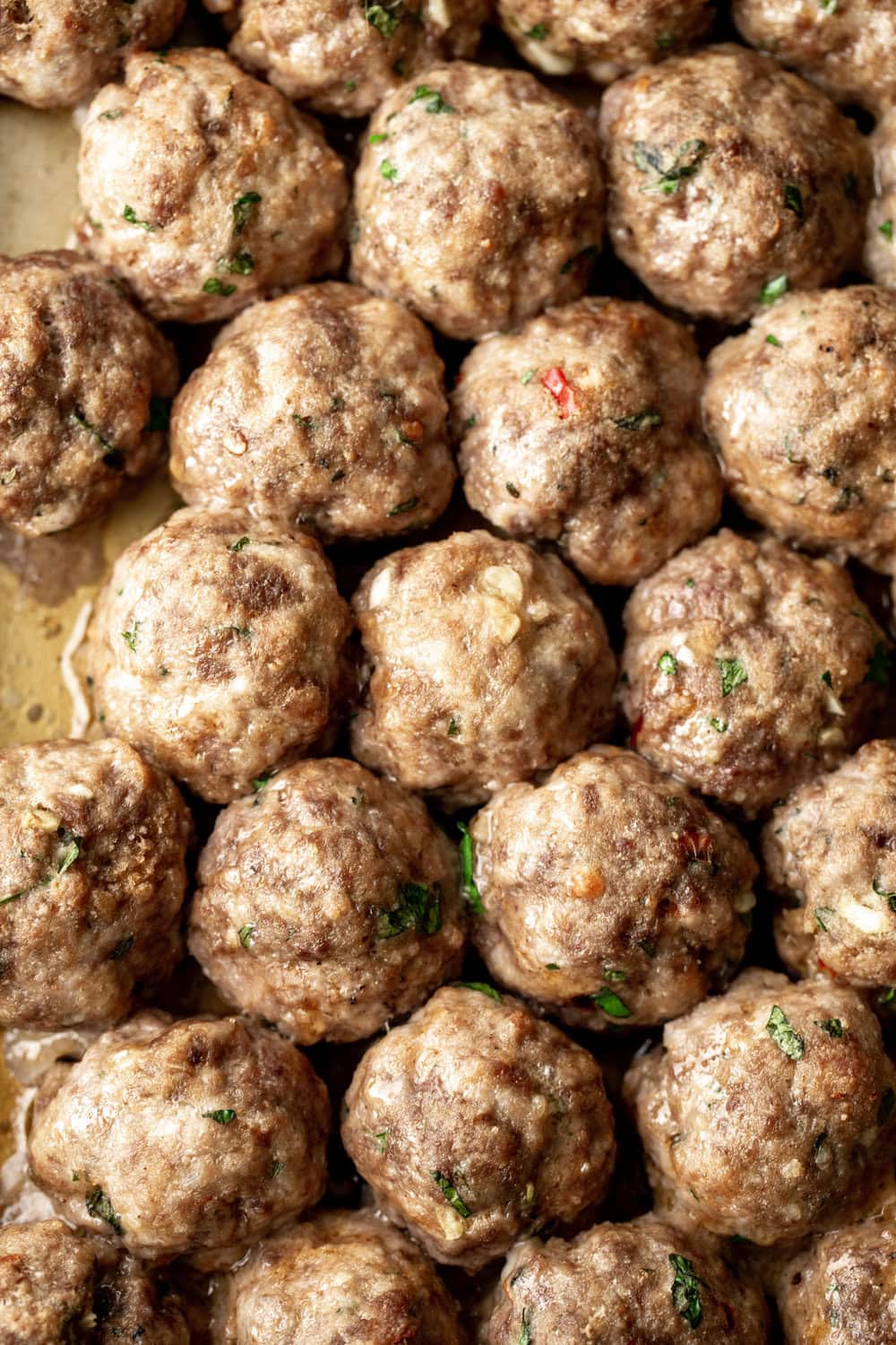 - Seasonings – The meatballs are seasoned with fresh chopped flat-leaf parsley, oregano, Calabrian chilies, red pepper flakes, salt and pepper.