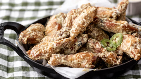 Tangy, peppery Alabama white sauce turns classic chicken wings into a crave-worthy Southern favorite. This unique twist on Alabama white sauce made with the addition of roasted jalapeños is inspired by one of my favorite restaurants, Helen in Birmingham, Alabama. They serve the sauce slathered over smoked beef ribs where I pair it with more approachable chicken wings. Tender oven-baked chicken wings meet tangy Alabama white sauce for a creamy barbecue classic that’s bold, unexpected, and completely irresistible. For a more traditional sauce recipe try, this fried chicken sandwich with Alabama white sauce. For a full Southern-inspired spread, try serving these wings alongside fried green tomatoes with comeback sauce and one-pot pimento mac and cheese.