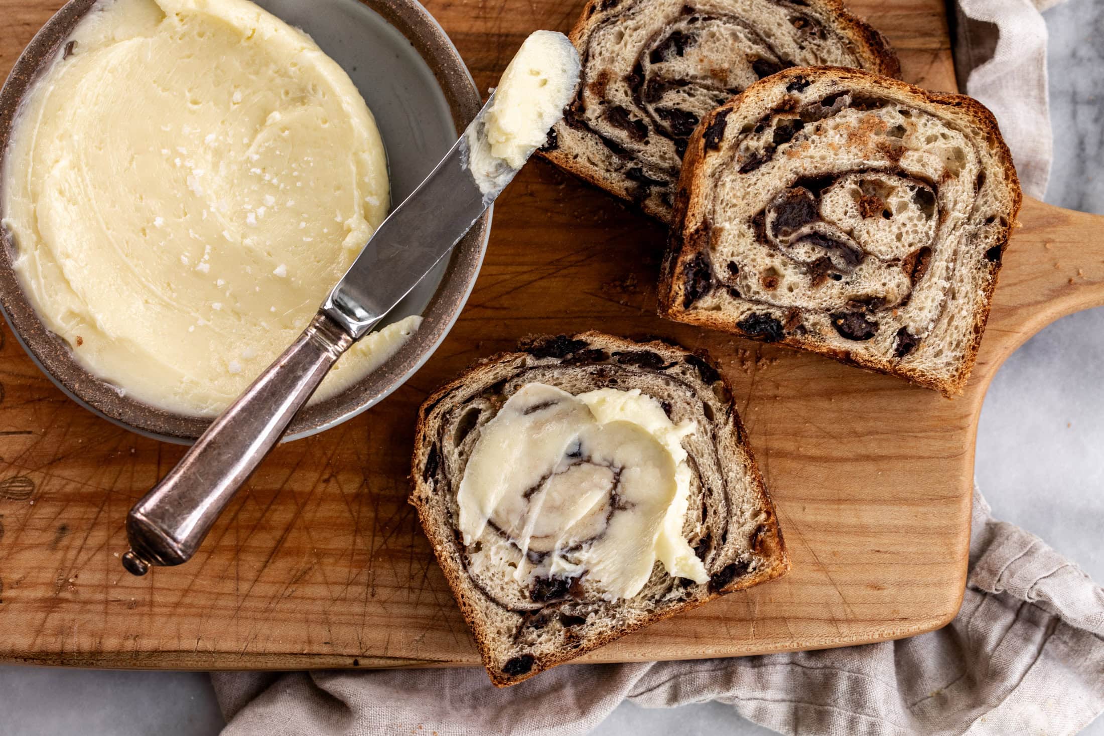 Store refrigerated in an airtight container for up to 2-3 weeks. If storing at room temperature on the counter, I recommend using a butter crock. Salted butter slows the butter from going rancid, and it will last longer.